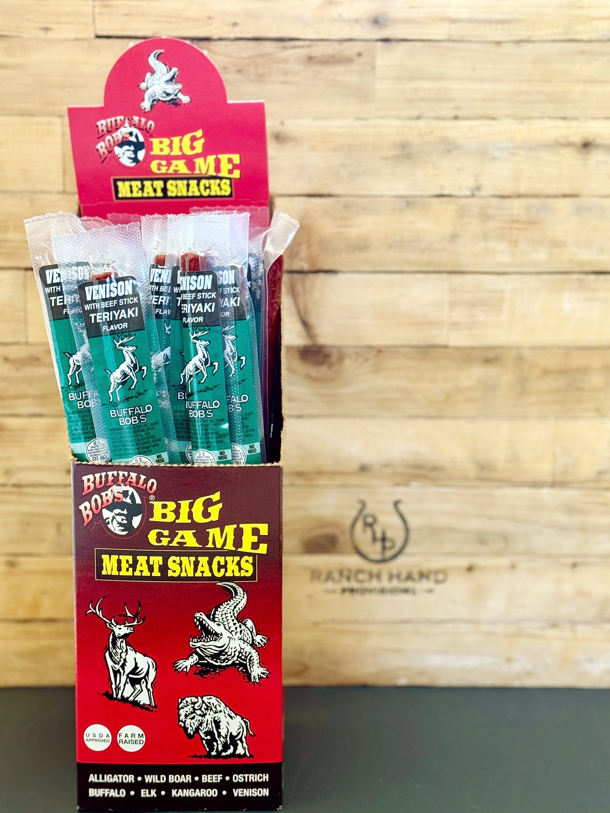 Buffalo Bob's Venison Teriyaki Jerky Stick is made from premium New Zealand farm-raised venison, grazing naturally year-round without antibiotics or hormones. Packed with clean protein and a savory teriyaki flavor, it’s the perfect on-the-go snack!